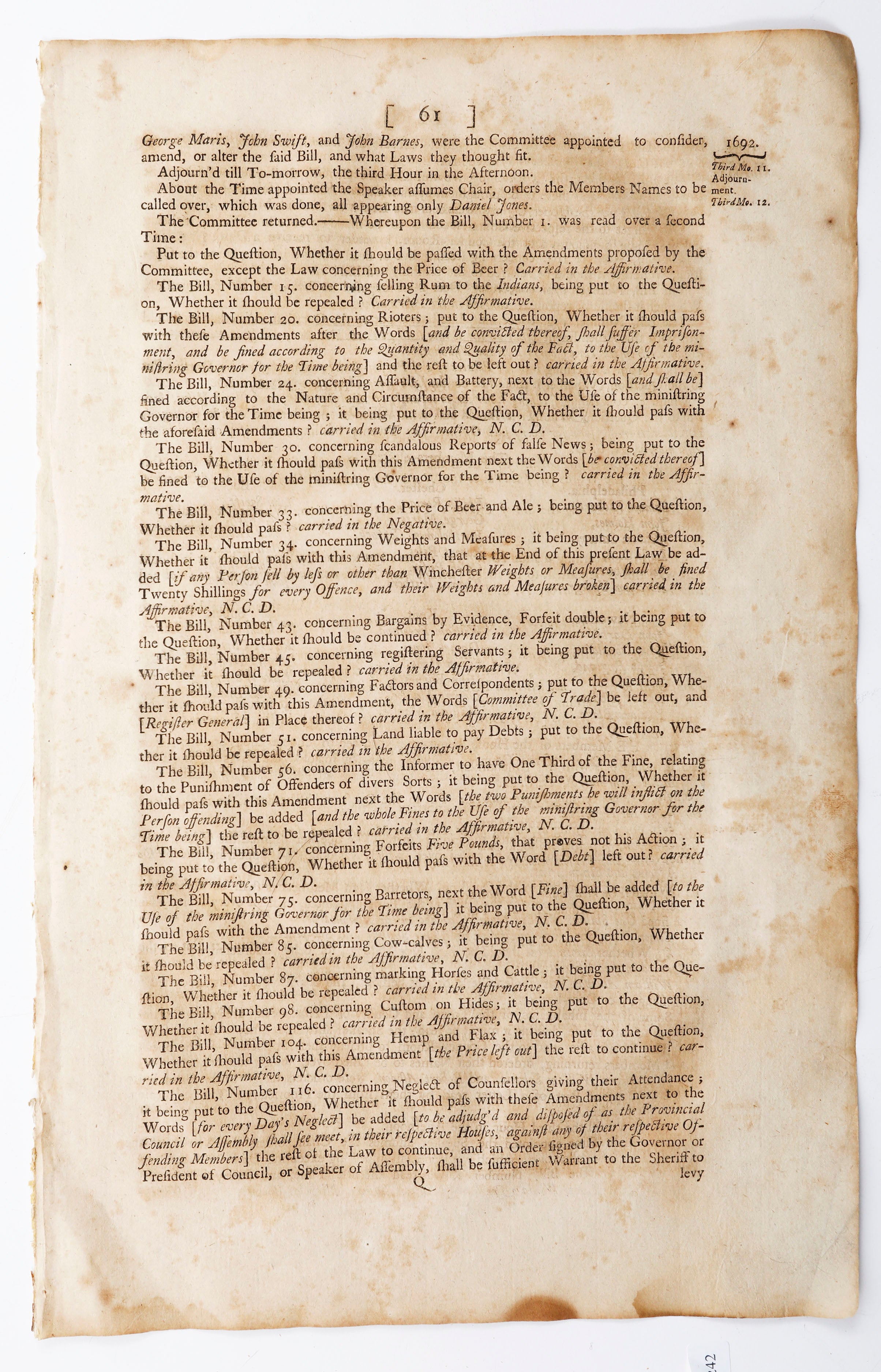Votes and Proceedings of the House of Representatives of the Province of Pennsylvania. Beginning the Fourth Day of December 1682. First edition of the first volume of three published by Franklin in 1752 covers the political history of Pennsylvania from 1682 up to 1744, including several of the acts that brought Pennsylvania into existence. Large size, 9 5/8” x 14”. Frameable and a wonderful office display for a lawyer, politician, public servant, or of course, printer.