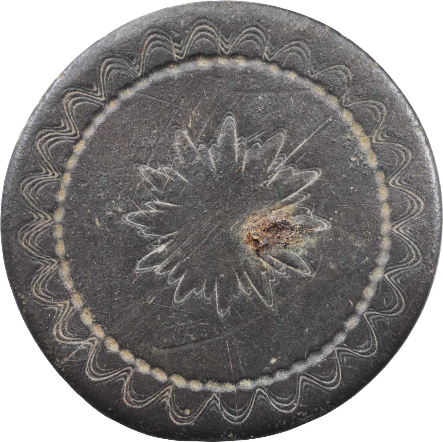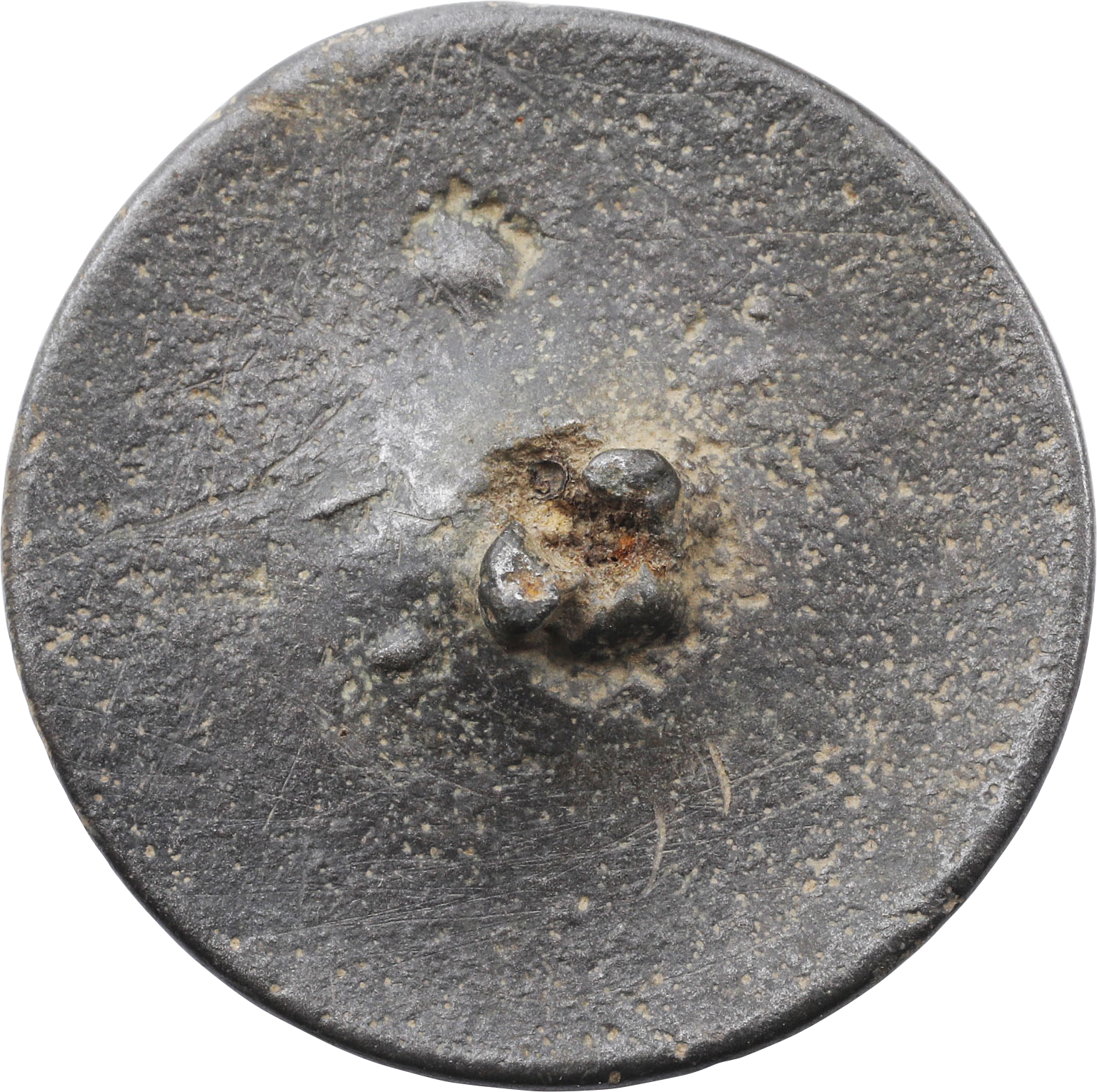 Over 1” (1.07”) diameter, brass, originally plated. Central floral motif with broad hand engraved scalloped border. A civilian button used on a hand sewn officers coat. Purchased at a “relic shack” outside the Gettysburg battlefield in the late 1960’s. the back loop broken accounting for its loss in battle. The preserved result of a face to face fight on the Gettysburg battlefield.
