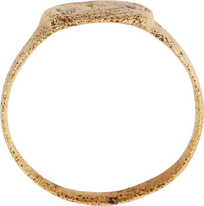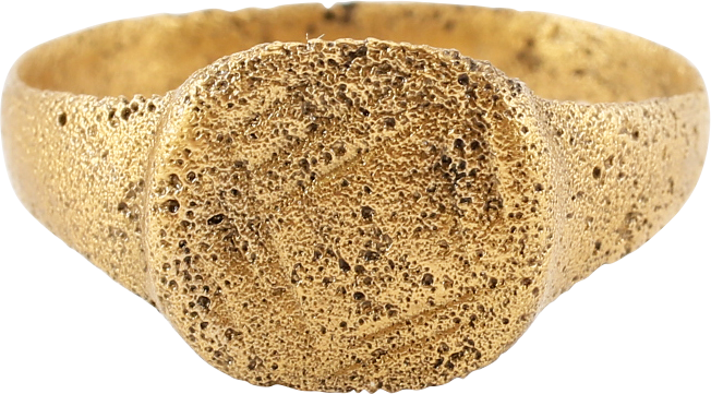 Size 9 ¼, worn by both men and women.  Rounded face tapered band 3.2mm, flaring to the shoulders. Raised rounded square bezel cut with a diamond on the hatched field, representing the Star of Bethlehem which at this time was depicted as a diamond shape based on the earlier star of Mars, Roman God of War. These rings were worn by Pilgrims to the Holy Land in the 9th century. Professionally refurbished with the 24karat gold surface restored. Gift boxed with a certificate of authenticity.