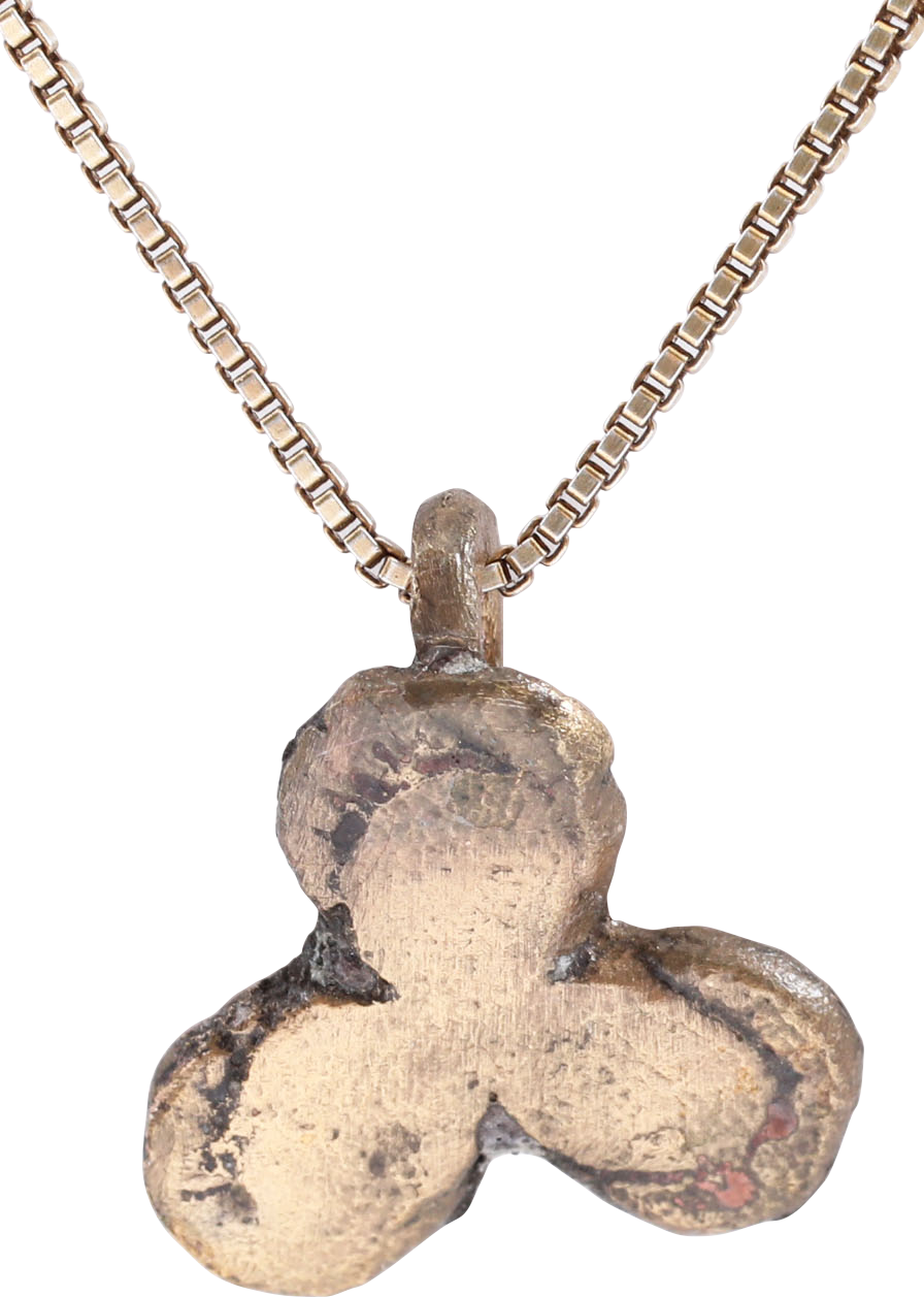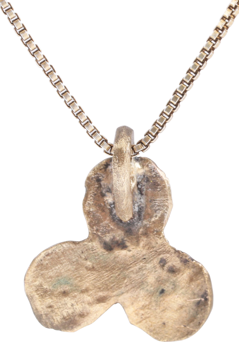 Gilt bronze, formed as three bordered circles, a reference to the Medici coat of arms and thus, to Vencie or Venetia. Over ½” (0.54”) height plus the suspension loop. Surface textured from burial. Professionally refurbished with the 24karat gold surface restored, on an 18” gilt silver neck chain for modern wear. Gift boxed with certificate of authenticity.