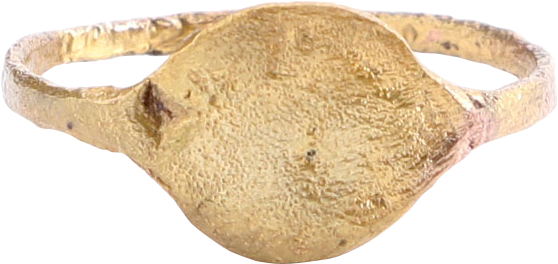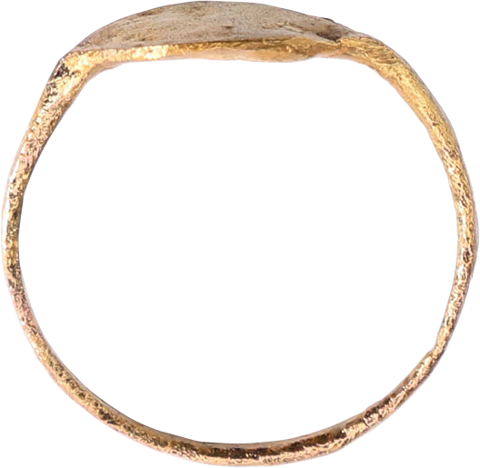 Gilt bronze with lenticular bezel cut with a figure, now obscured by degradation from burial. Serving as a signet representing the owner’s seal or signature.  Professionally refurbished with the 24karat gold overlay restored. Gift boxed with certificate of authenticity.