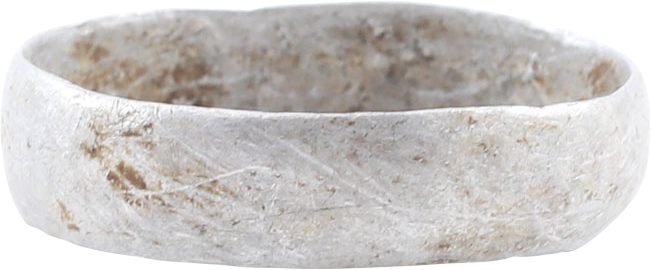 Found by metal detector around 2000 at Ypres (Belgium) scene of some of the most intense fighting with English and French bringing the German advance to a stalemate. Made of aluminum salvaged from ordnance. Size 8 3/4 with rounded broad 5.3mm. Light gray surface oxidation.