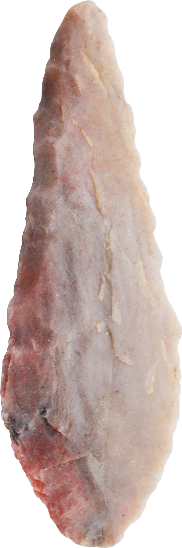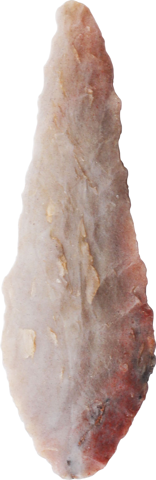 Early Dynastic period. Over 1 1/4” (1.30”) length, finely flaked flint with both sides finished in the round. Leaf-shaped with fine color.