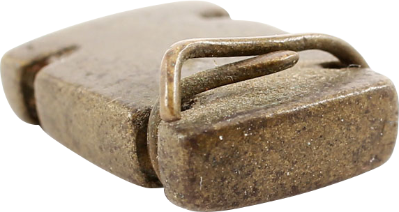 From the Sir Cecil Armitage Collection. Dating to the second half of the 19th century to early 20th, geometric gold weights were used to weigh gold dust which was the currency of the Ashanti, used largely for the purchase of slaves. These geometric forms, now widely replicated (including those offered in museum shops which came from us), are the originals from the famous collection of Sir Cecil Armitage, Governor of Gambia (1921-27) after an exemplary military career in Africa. This example is a rhomboid, over ½” in length with the ends notched. One end with a brass wire to bring the weight up to standard. Wear from use and good patina.
