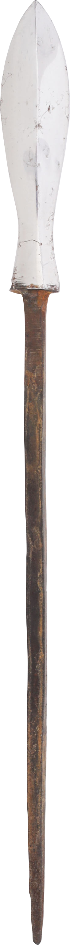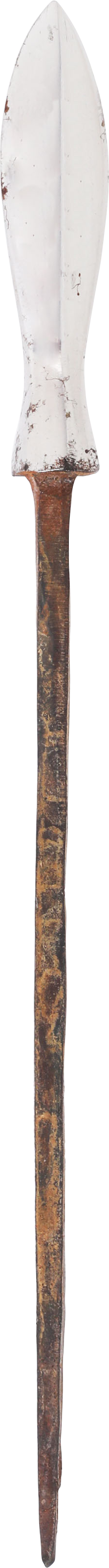 Yanagiha (willow leaf) form. See Glossary of the Construction, Decoration, and Use of Arms and Armor, Stone fig.862 #2. Edo period. 6 1/4” in length with a tapered tang. Heavy proportions as these were made in various weights to accommodate battlefield conditions particularly ranges of attack. The point is crisp and bright.