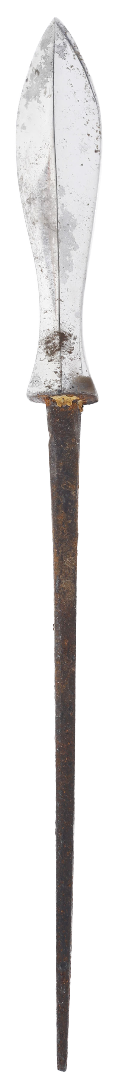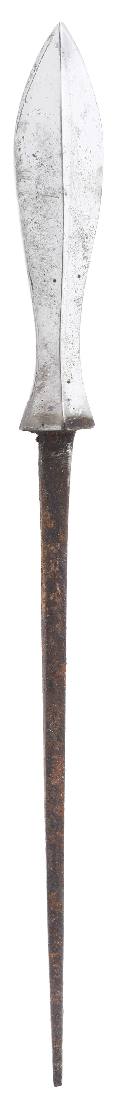 Yanagiha (willow leaf) form, See A Glossary of the Construction, Decoration and Use of Arms and Armor, Stone fig.862 #2. Edo period. 5” length with a tapered tang. Average battlefield weight as these were made in various weights to accommodate battlefield conditions particularly ranges of attack. Point crisp and bright with a little spider rust.