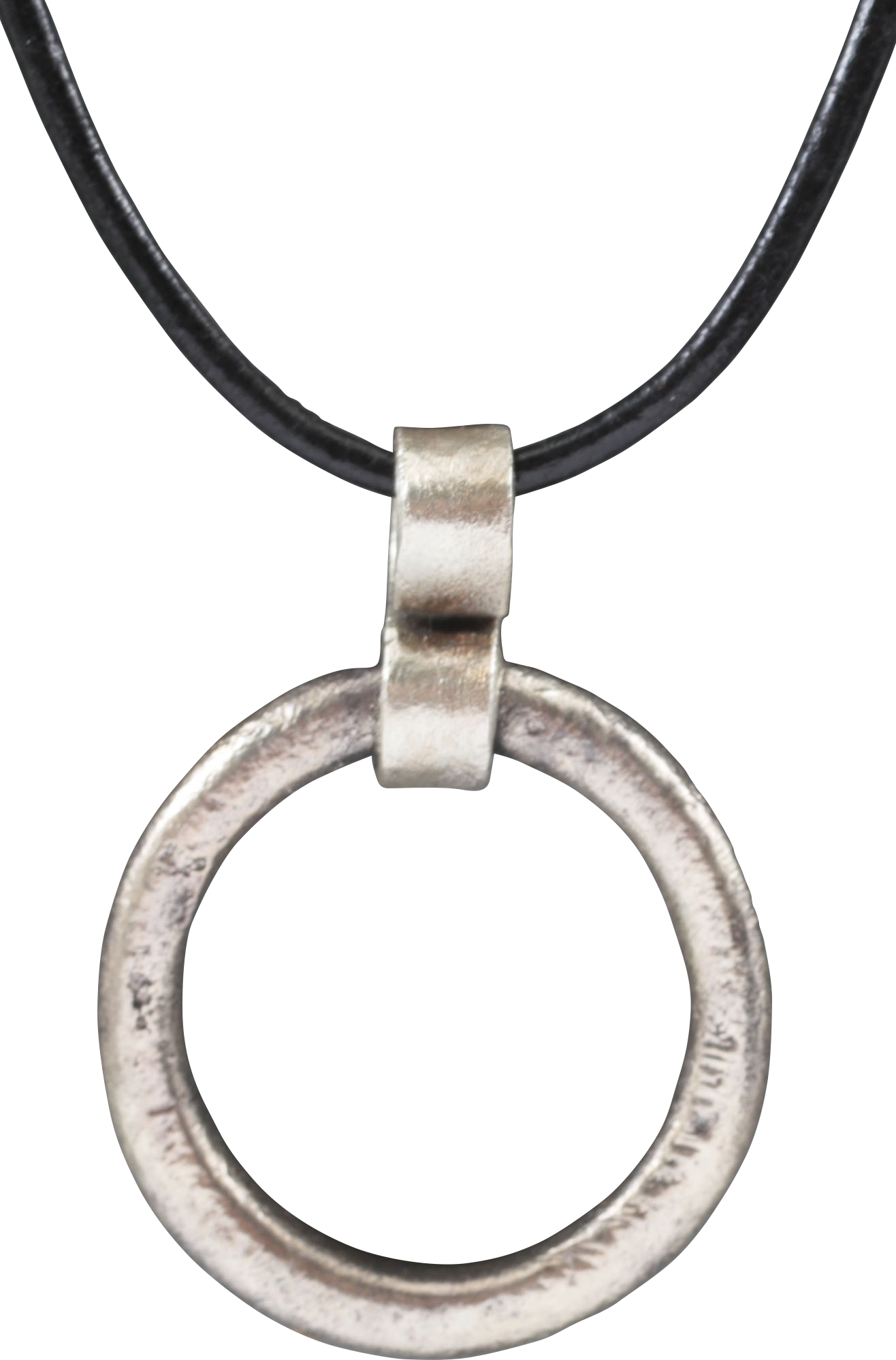 Before the Roman invasion of the British Isles, rings of bronze, silver, and gold were used as a means of exchange, particularly in Ireland. Most exchanges of goods and property were conducted by barter based on shrewd evaluations in each specific situation. Some, including bride prices, later to be called dowries, needed to be more accurately quantified. These rings fulfilled that need as well as providing a palpable demonstration of value. They were worn, sewn to men’s leather jerkins as displays of prosperity. Further, when worn in sufficient numbers, they provided substantial protection from an edged weapon attack. So very like armor in the Middle Ages, they advertised that the wearer was successful economically which translated both by implication and demonstration that he was a formidable objective, best left in favor of something more easily overcome. This example is over 1 1/8” (1.18”) diameter. Professionally refurbished and silvered. On an 18” modern Sterling silver neck chain for everyday wear. Jewelry gift boxed with a certificate of authenticity.