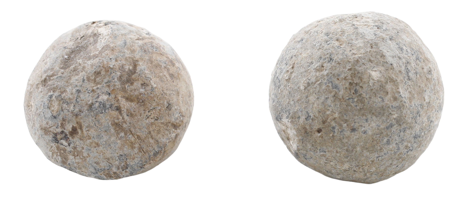 Battle of King’s Mountain, Oct. 7, 1780. Pair of American buck shot, about 0.46” diameter, recovered from the battlefield in the 1930’s and purchased at Schindler’s Antiques, Charleston in the 1980’s. The American long rifles often used a mixed load consisting of the primary ball ahead of which and still within the patch, were a few smaller buckshot which, in close quarters, could produce multiple casualties. That use is well documented but surviving buckshot are quite rare. This pair is among the few that we have encountered. Accompanied by certification of authenticity to Schindler’s Antiques, Charleston.