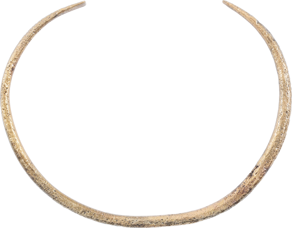 Gilt bronze, round section, 3.7mm thickness, tapering to the tassel form terminals. C form, 2 3/4" (2.73”) inside. Professionally refurbished with the silver surface restored. Jewelry gift boxed with certificate of authenticity.
