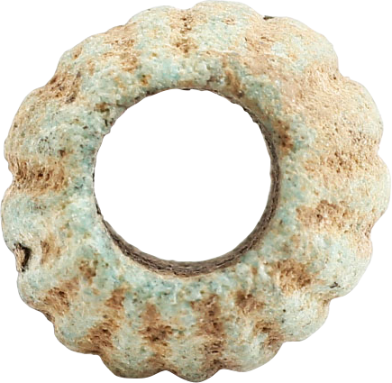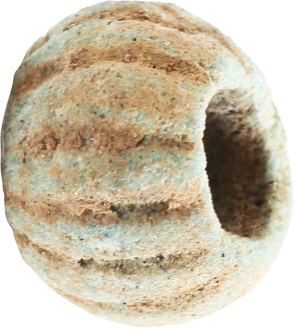 8th-9th century AD. Ribbed spherical form, just under ½” (0.46”) diameter. Well preserved with wear and considerable blue glaze remaining. Vikings valued beads over gold and have been known to take beads as ransom or tribute to call off raids. Wonderful Viking relic and a fine centerpiece for modern jewelry creation.