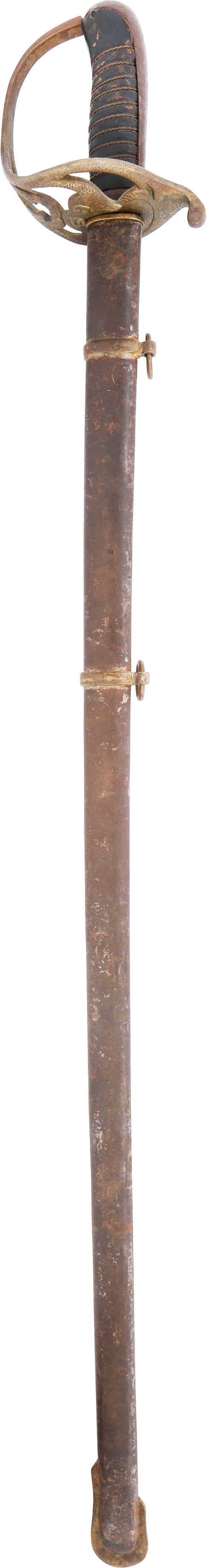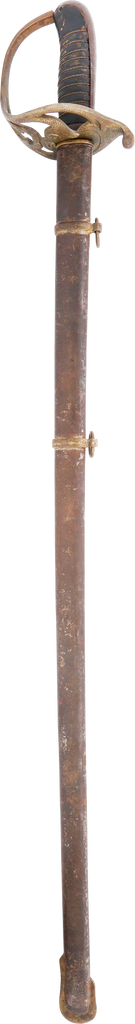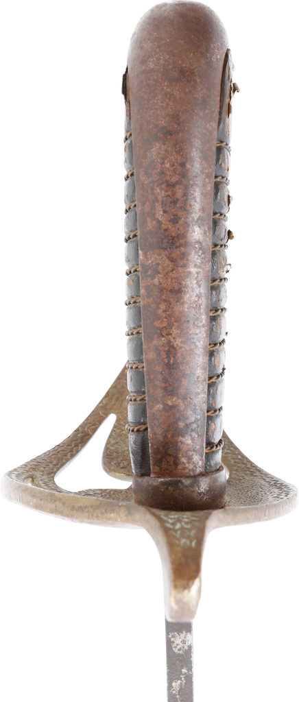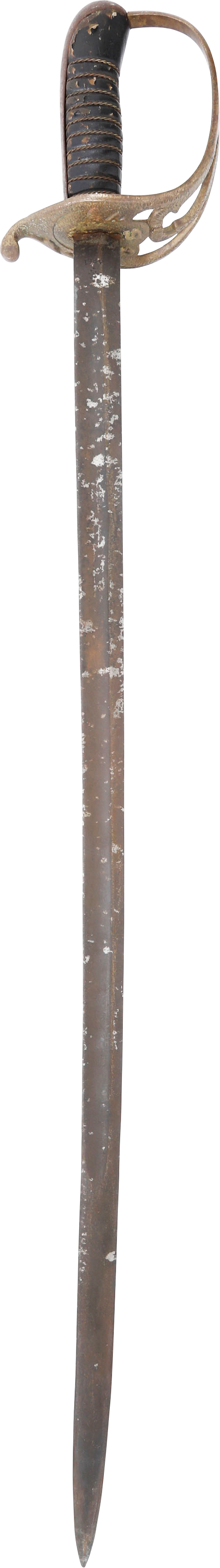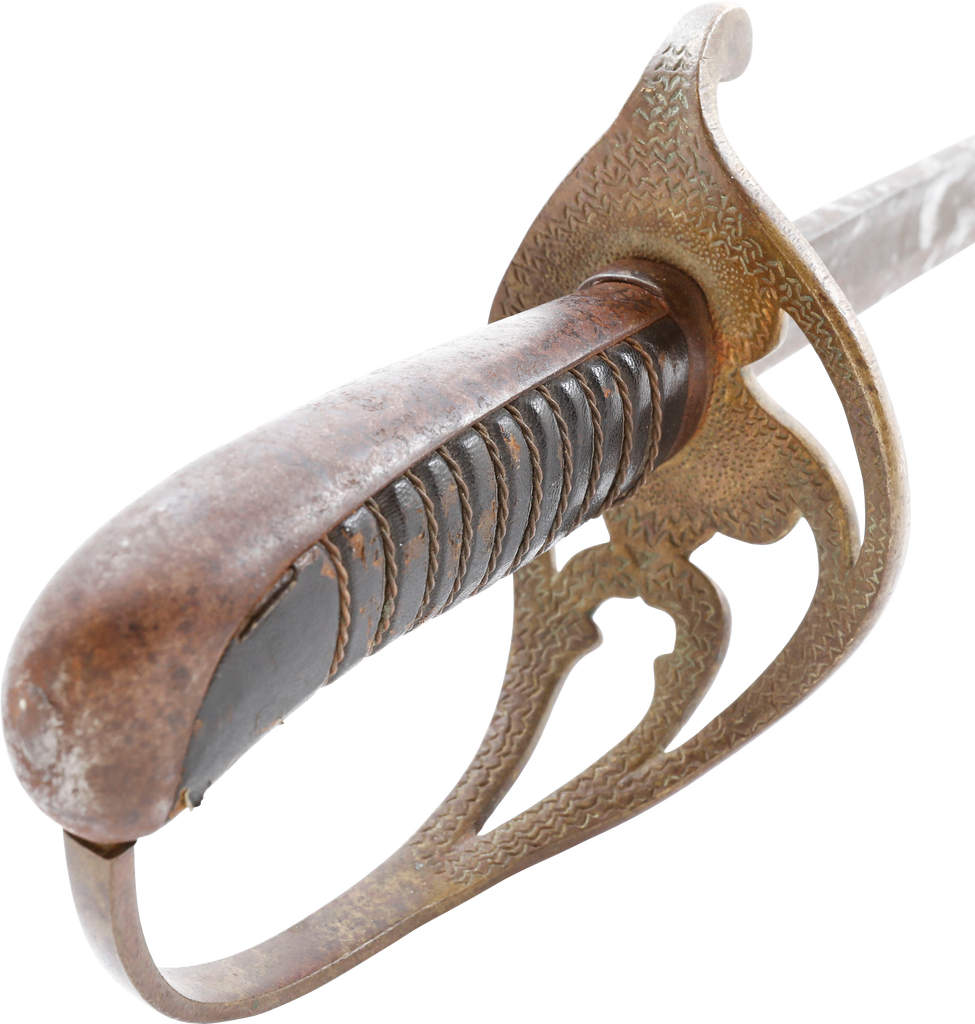 In the decade before the Civil War Centennial, interest in Civil War weapons increased resulting in a premium on Confederate weapons. This resulted in some, yet to be identified, opportunists creating fake Confederate swords. These were not copies as often seen today, but forgeries intended to and which likely did, deceive a purchaser. This example is a College Hill Arsenal Cavalry Officer’s sword. The blade is marked with a diamond shaped cluster of stars and 1861. It has been “aged” to suggest honest wear and secreting after the disarmament. At the time, there were no comprehensive references and the few books on the subject were line illustrated providing no useful information on which a judgement of authenticity could be made. A curiosity in the history of sword collecting and a substantial stand in for the five figure original.