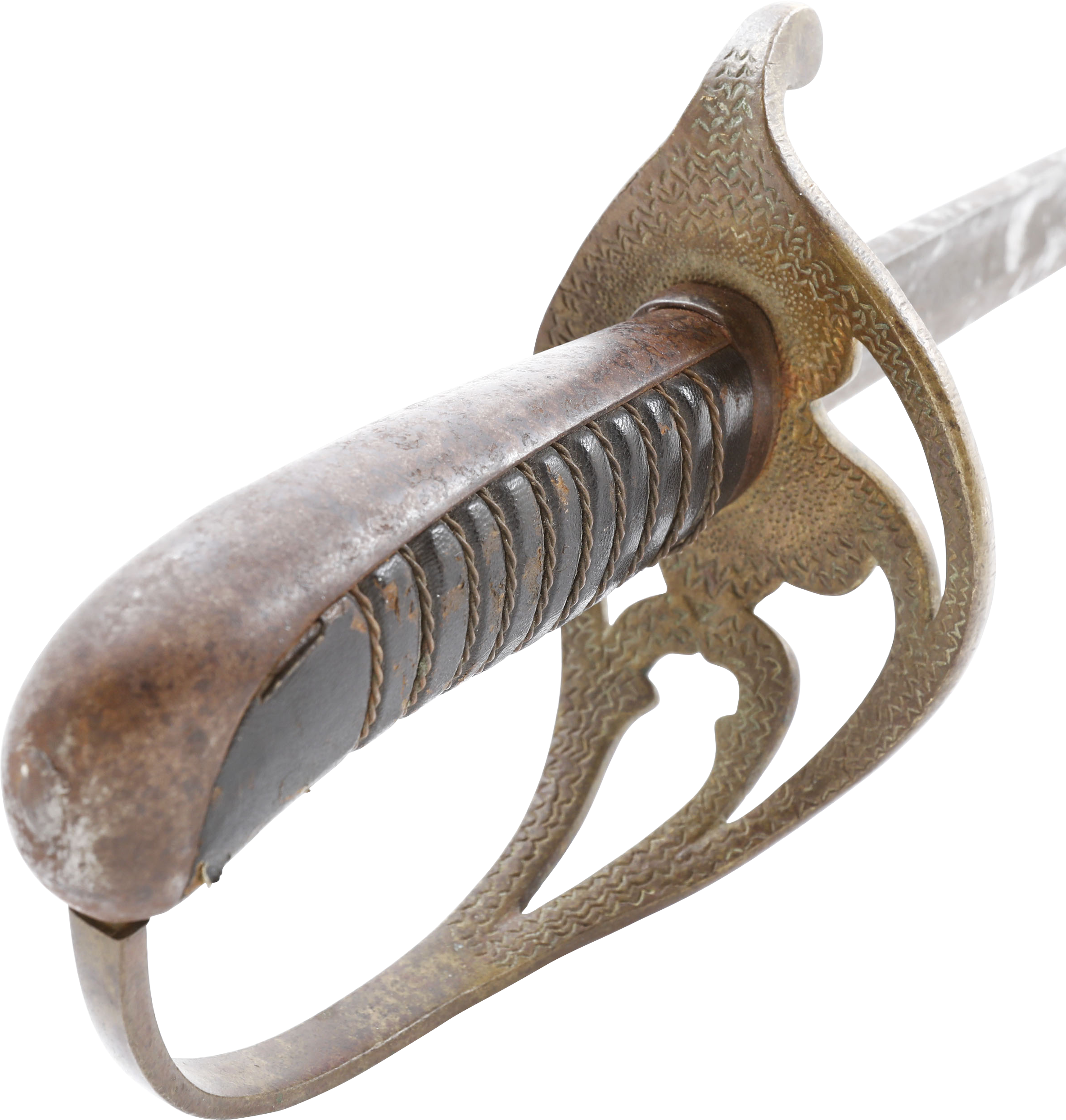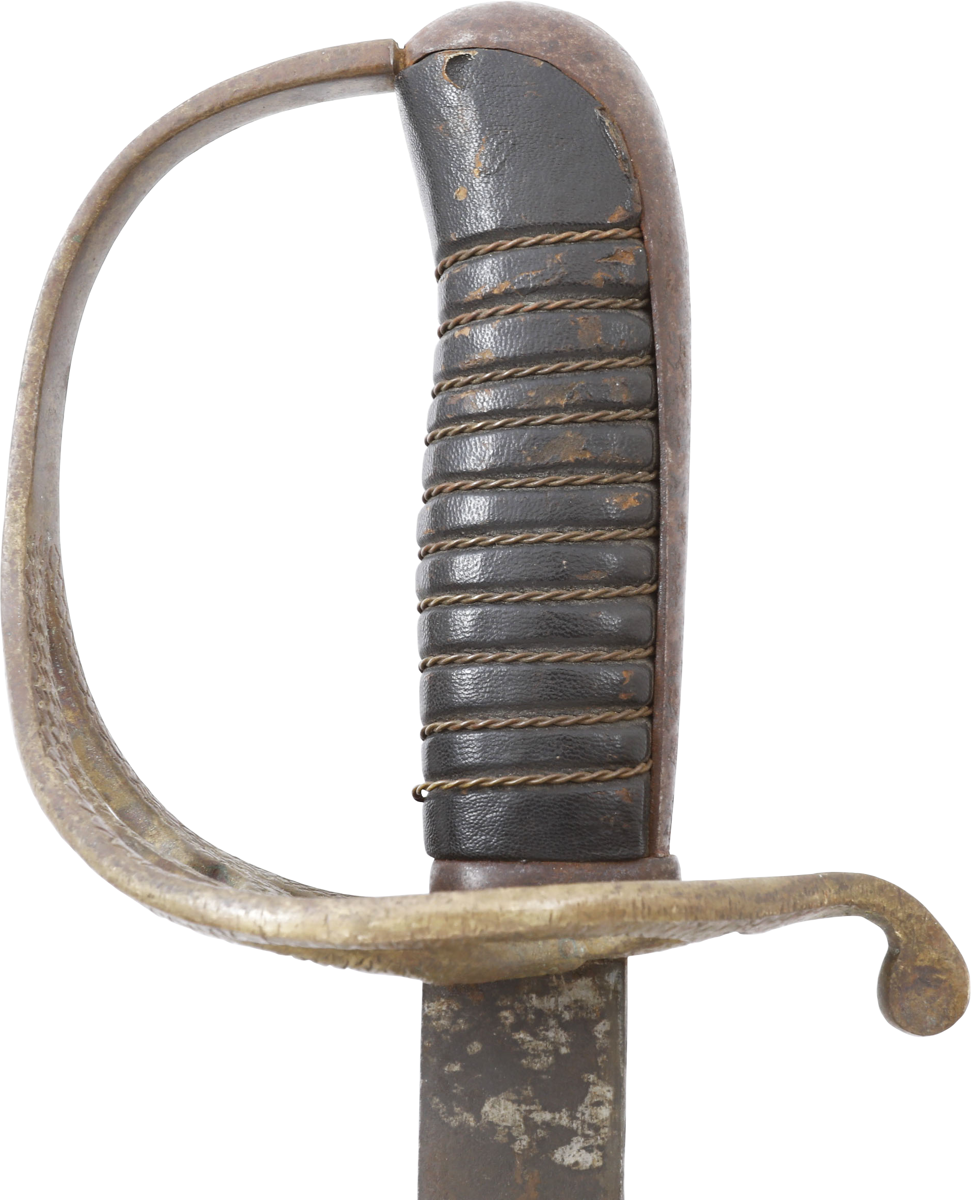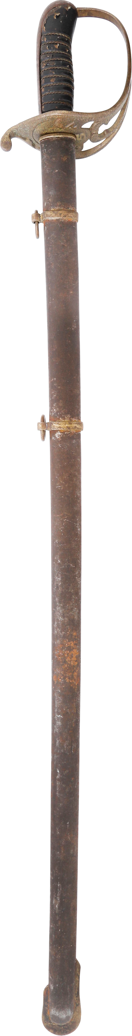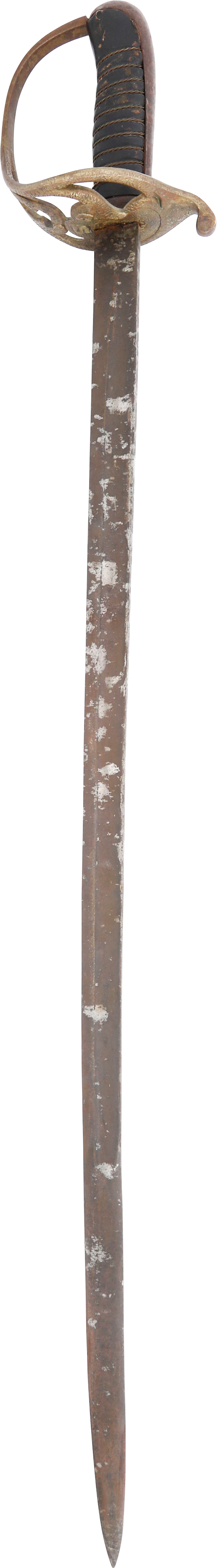 In the decade before the Civil War Centennial, interest in Civil War weapons increased resulting in a premium on Confederate weapons. This resulted in some, yet to be identified, opportunists creating fake Confederate swords. These were not copies as often seen today, but forgeries intended to and which likely did, deceive a purchaser. This example is a College Hill Arsenal Cavalry Officer’s sword. The blade is marked with a diamond shaped cluster of stars and 1861. It has been “aged” to suggest honest wear and secreting after the disarmament. At the time, there were no comprehensive references and the few books on the subject were line illustrated providing no useful information on which a judgement of authenticity could be made. A curiosity in the history of sword collecting and a substantial stand in for the five figure original.