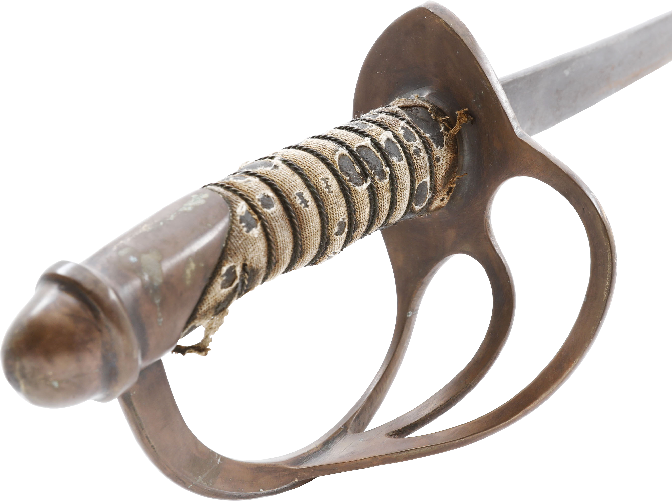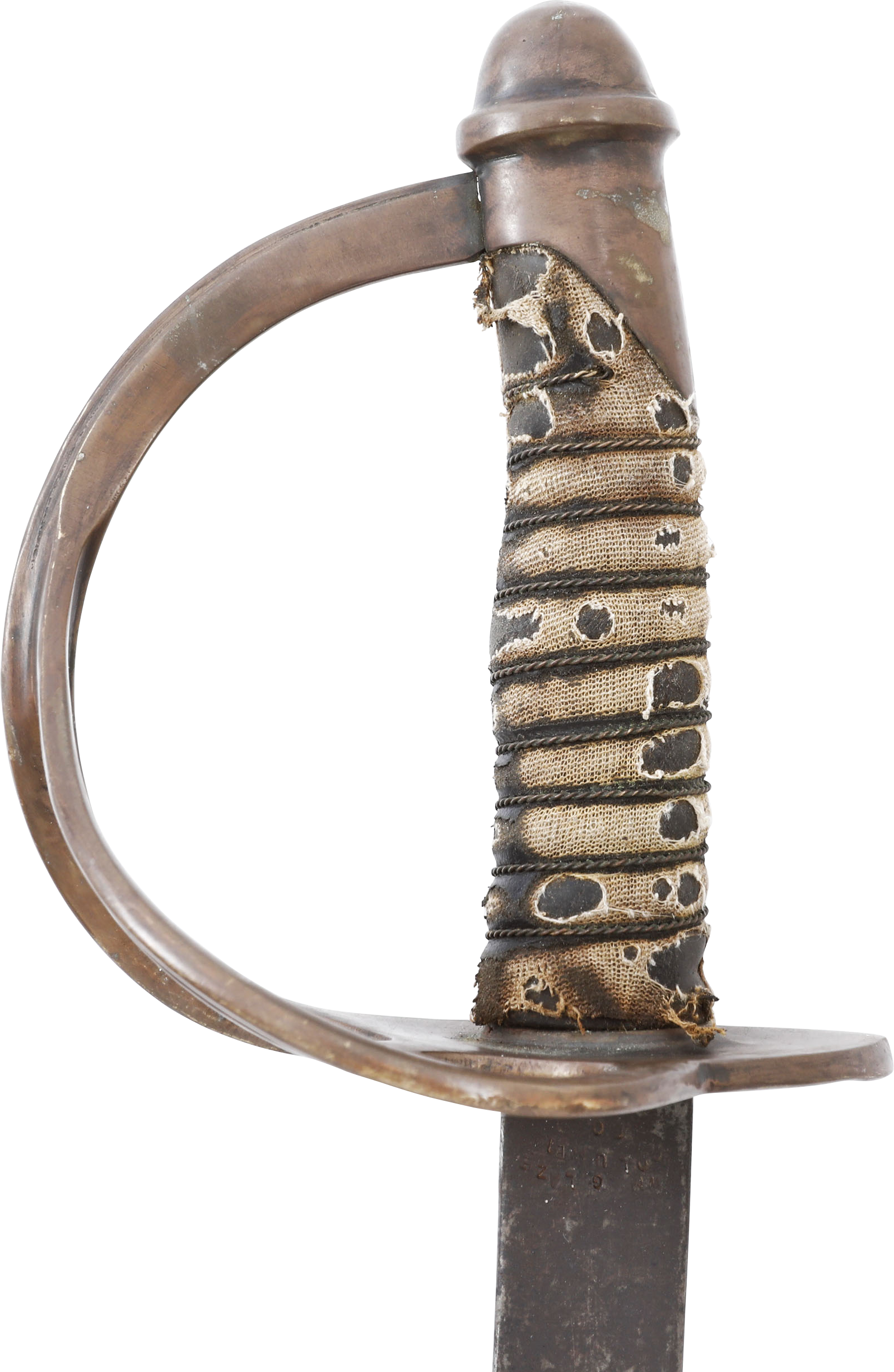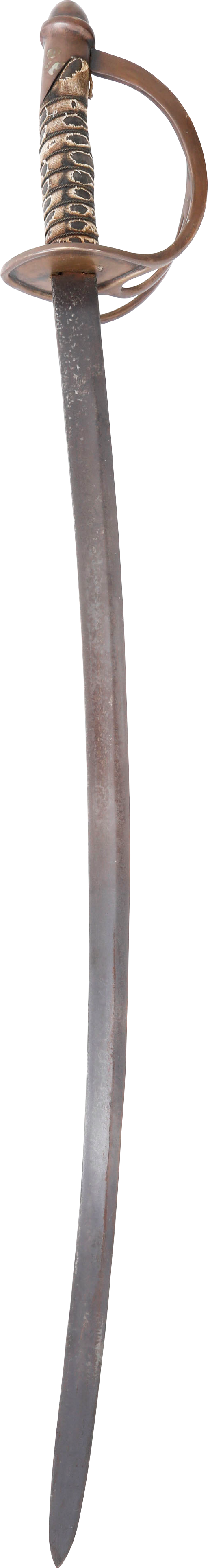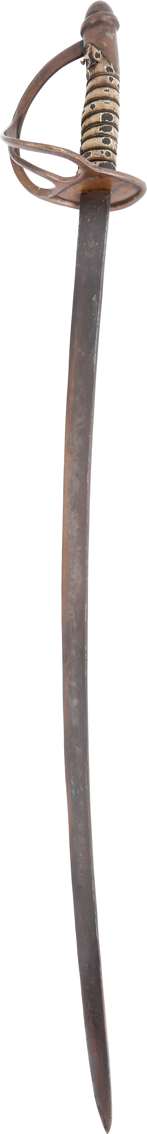 In the decade before the Civil War Centennial, interest in Civil War weapons increased resulting in a premium on Confederate weapons. This resulted in some, yet to be identified, opportunists creating fake Confederate swords. These were not copies as often seen today, but forgeries intended to and which likely did, deceive a purchaser. This example is a cavalry officer’s sword marked WM GLAZE COLUMBIA SC 1864, noted sword producer associated with the Palmetto Armory. It has been “aged” to suggest honest wear and secreting after the disarmament. At the time, there were no comprehensive references and the few books on the subject were line illustrated providing no useful information on which a judgement of authenticity could be made. A curiosity in the history of sword collecting and a substantial stand in for the five figure original.