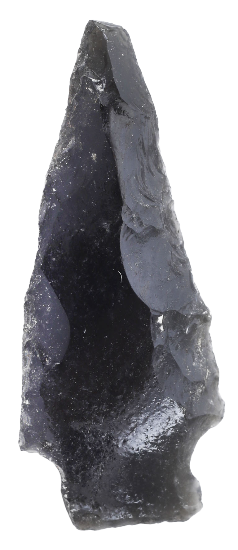 Valley of Mexico, Toltec C.1000 BC-800 AD. Over 1 1/4” (1.24”), finely flaked obsidian of particularly thick section with flared/notched base. Probably a votive (sacrificial gift to the Gods). Toltec history is still the subject of some controversy among experts, so this item can most conservatively be described as "Valley of Mexico, 1000 BC - 800 AD".
