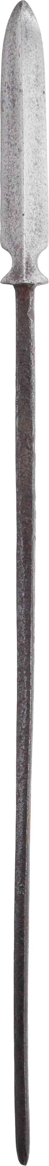 Edo period. 7 1/4" length. Tapered diamond section point with indented base. Tapered tang. Smooth patina with crystal structure evident.