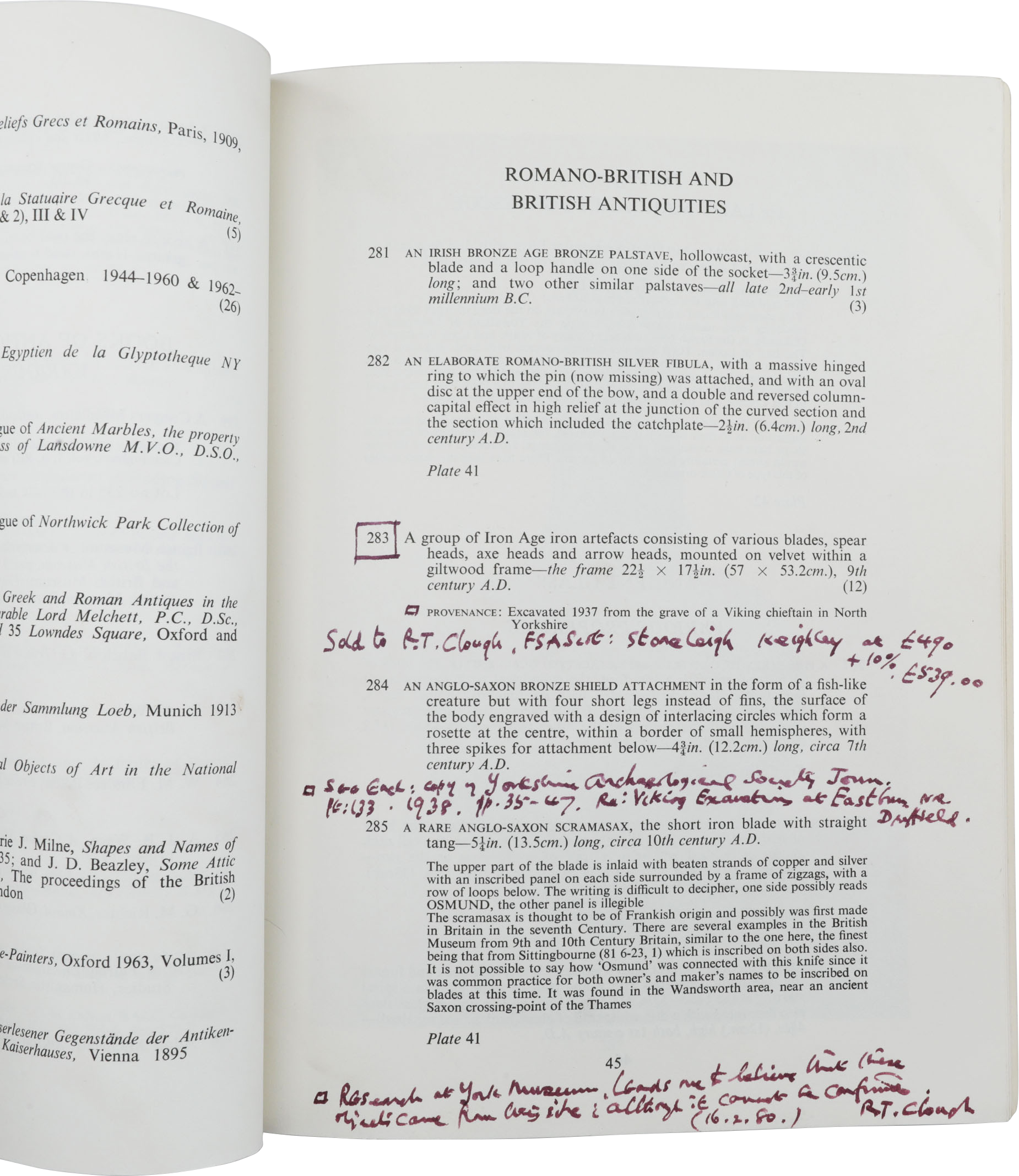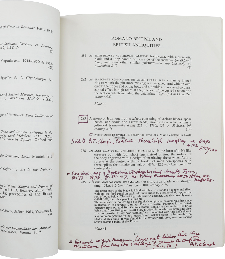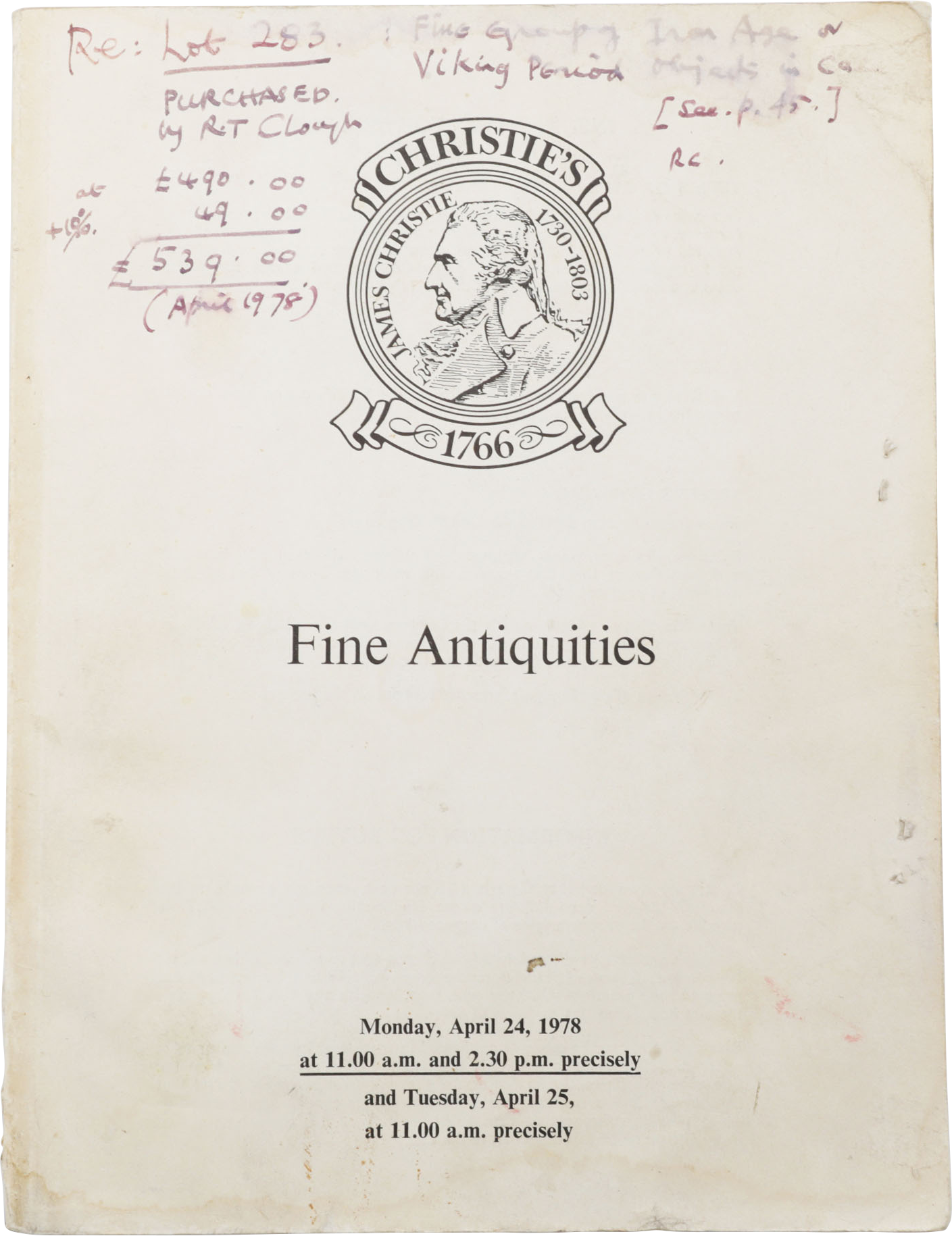 Sold April 24, 1978 to R T Clough FSA, Christie’s, London, sale of Fine Antiquities.