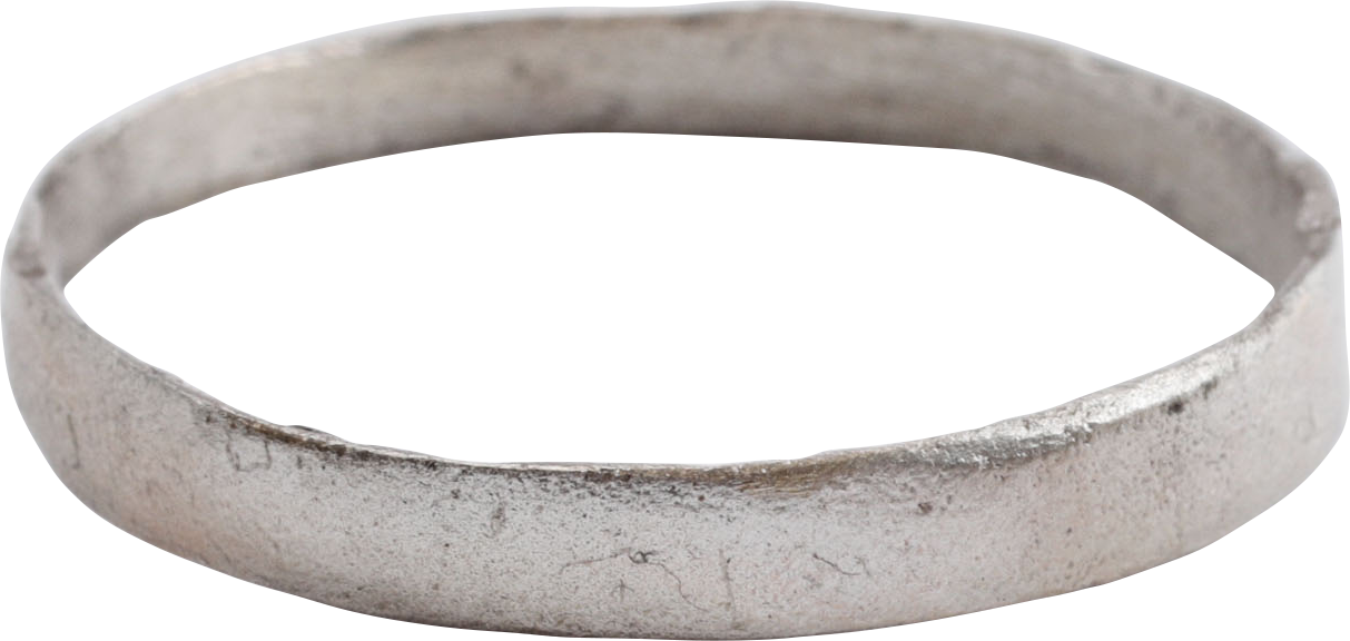 10th-11th century AD. Slightly rounded face band. 3.3mm width. Rare large size 14 ¼. Vikings exchanged rings on the pommel of the groom’s sword. Surface textured from burial. Professionally refurbished with the pure silver overlay restored. Gift boxed with a certificate of authenticity.